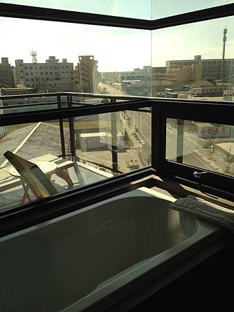 放滿一缸熱呼呼的水,看著夕陽餘暉下的澎湖街道